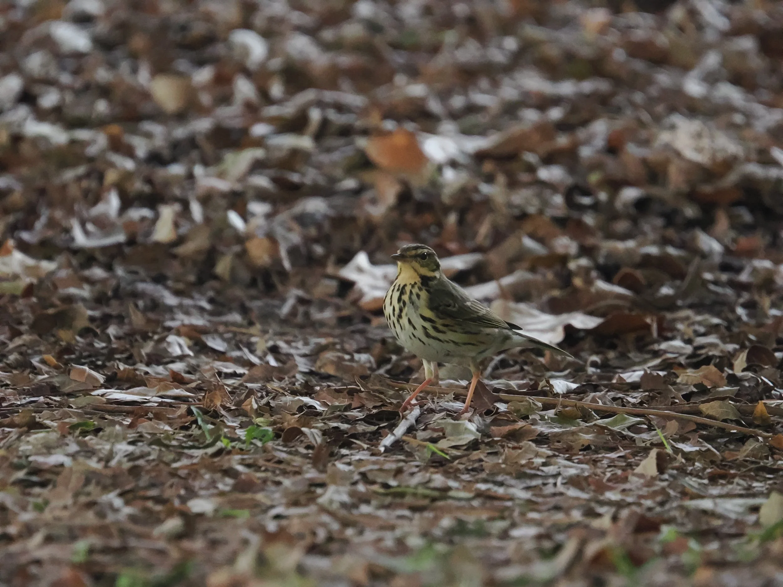 The star of the show: the Olive-backed Pipit! I think I read that someone drove multiple hours just for the chance to see this little guy. It spent most of its time in the shade but wasn’t shy at all and gave me plenty of great looks while I watched. Thankfully, it preferred foraging on the ground, so I didn’t have to strain my neck searching through the trees (which is the worst). Loved watching it shuffle through the leaves in search of the perfect little snack.